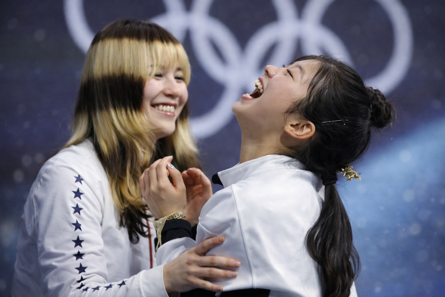 中井亜美のもとへ行き、抱きしめて、祝福した。五輪公式も、その姿を「金メダルだけでなく、みんなの心も掴んだ」と紹介している。